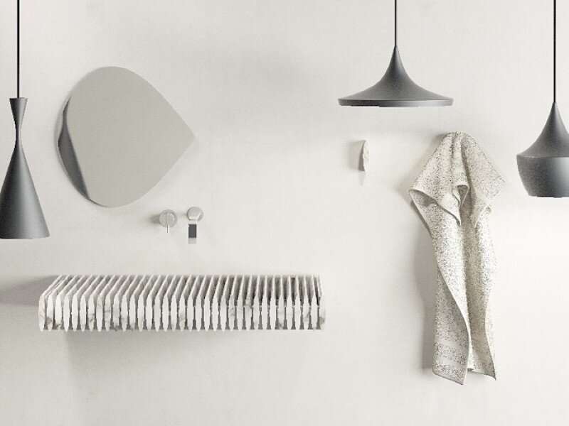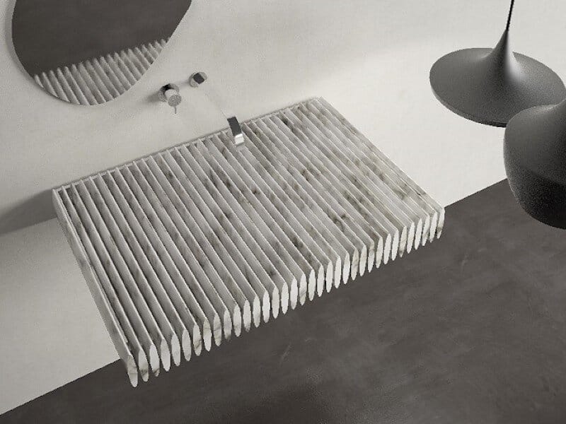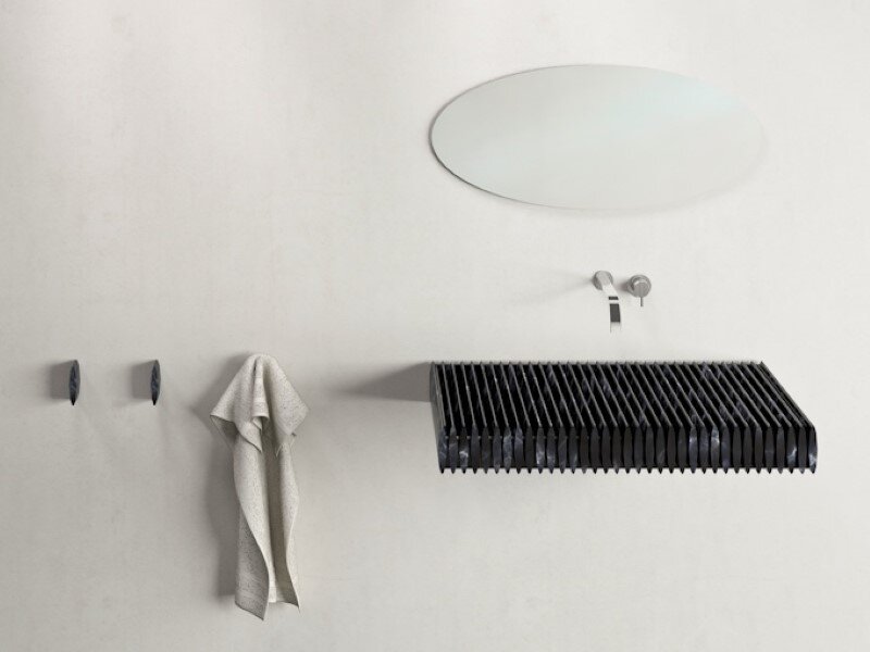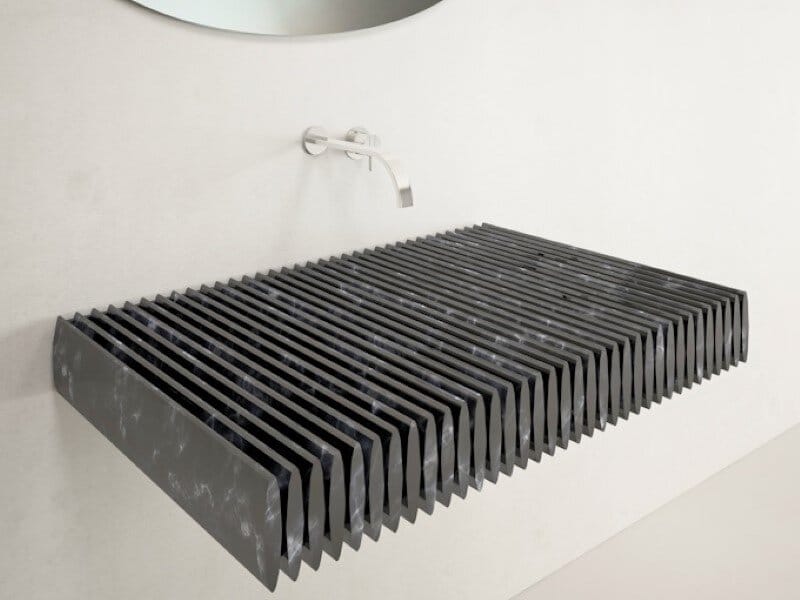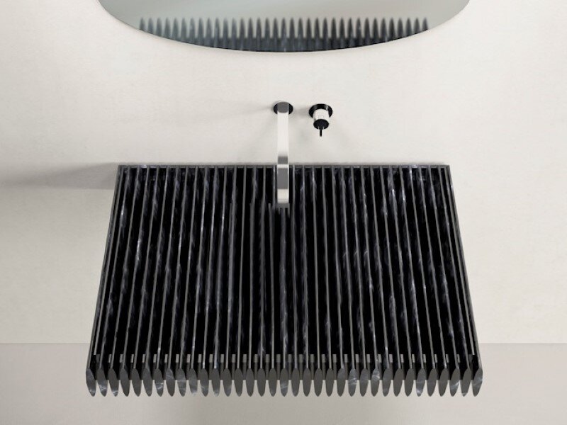 Think Of Stone – Birichino is a marble sink designed by Purapietra. The sink looks like a grill and is made from Nero Marquina marble.
