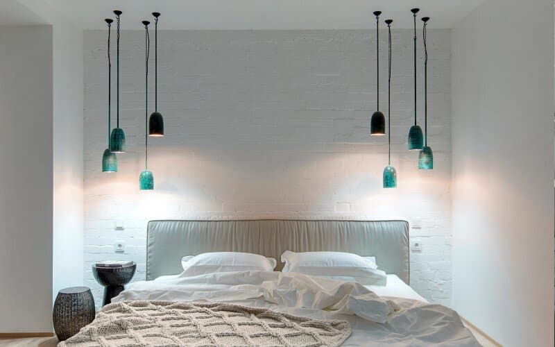 The main bedroom – on one of loggias we made area with a hammock for having rest, and on the second loggia we organized area with a dressing-table and bureau. Copper rundlets standing near the bed were brought from America, and copper light fixtures were found in a shop in Bali. As the Customer desired, we placed a big bed with sleeping place’s size of 2/2 meters. After removing the plaster from the wall we opened existing bricks and painted them white. The wires to the sockets and switches were laid in the joints between the bricks. In the sanitary room of the main bedroom we decided to make a wooden ceiling (from boards of pine spruce). We deliberately refused from the showers and installed bathrooms at the Customer’s request. There is a lamp in the nursery on the wall – MI MI. Idea is that this is a short form of Emily, name of the Customer’s daughter.