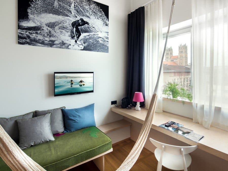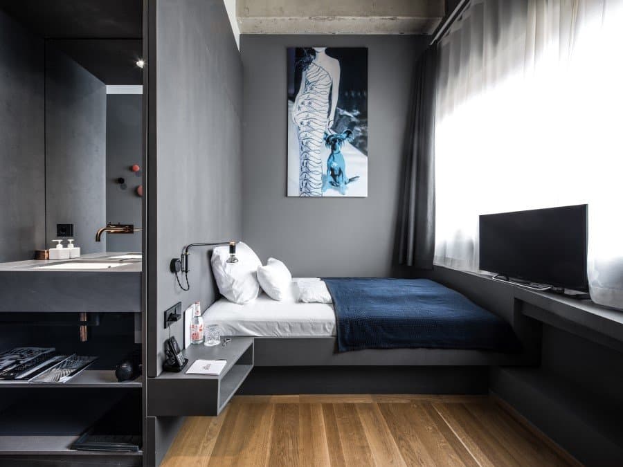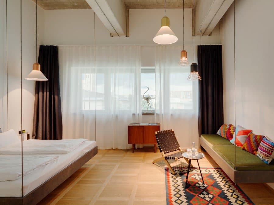 Located in one of Munich’s most vibrant districts—Glockenbach, the building was a former post office and its façade has been left unchanged. The architects worked with the rather high ceilings to create 11 light-filled loft studios on the third floor. Attention to detail entails that the staircase built for the connection between the top floors was fashioned in the same industrial, loft-like style of the rest of the building. Via Design Hotels