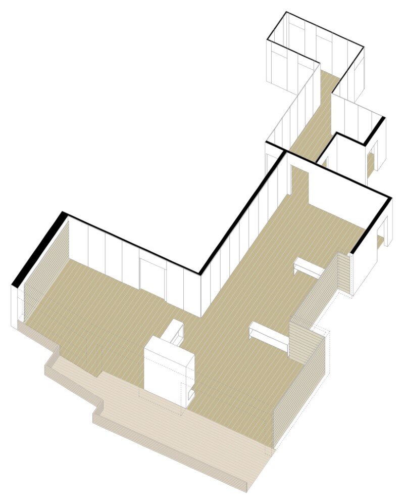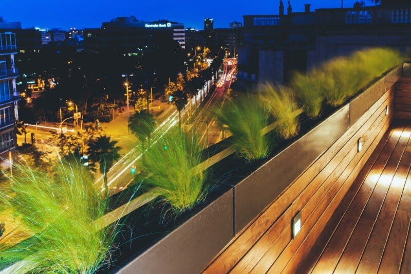 Lastly, the exterior terrace is conditioned with an ipe pavement, which climbs to handrail height to create greater privacy and combines with the bespoke planters in iron and stipa plants.