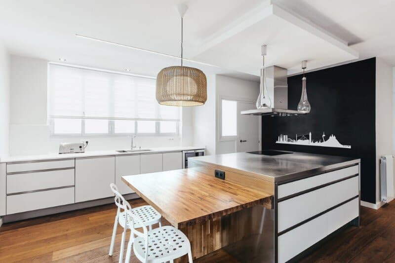 Description by Dom Arquitectura: The refurbished flat is situated in Sarria-Sant Gervasi. As a starting point few important decisions were taken. On one hand to rethink the out-dated overall organization, unifying the entrance and the living room, as well as the office and the kitchen. This helped a general spatial integration, generating bigger spaces that flow easily into each other, and reduced the number of doors and partitions. On the other hand to revamp all the electrical, plumbing, cooling and heating systems to updated technologies. Refurbishing completely kitchens and bathrooms.