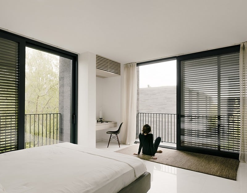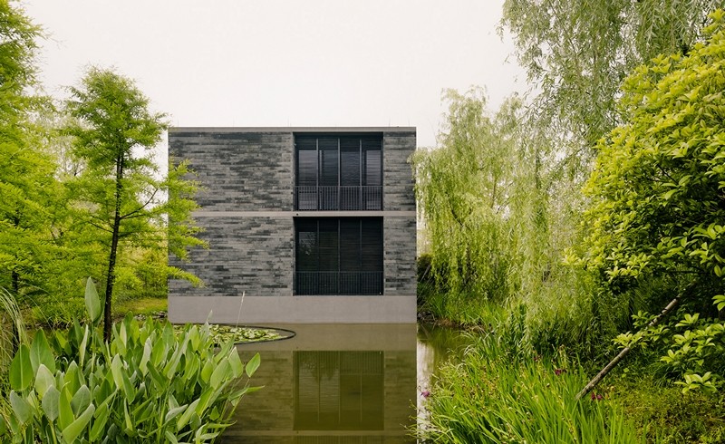 They are, as is typical for villages in Xixi, placed on a stone plinth that sits in the water. This plinth forms the base of a village group with various levels, walls, and balustrades creating a sequence of exterior spaces, which enable access to the buildings. The interiors are characterised by floating spaces. Room height windows allow for natural light and views over the water garden.