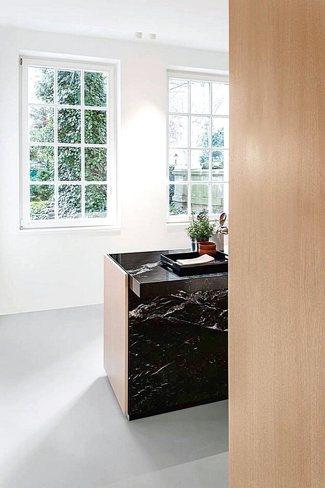 Description by Bruzkus Batek: This Moscow-based couple’s second home is located on the ground floor of a classical villa in the Grunewald district of Berlin. As part of the new design Bruzkus Batek Architects first pared the spaces down to the essentials by stripping out all decorative surface elements such as stucco, friezes, trim and coffering —also since these were damaged or in pretty bad condition.