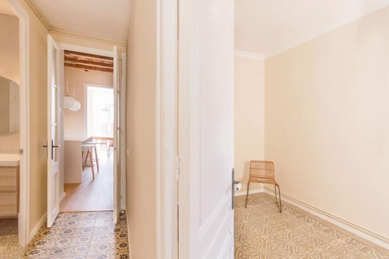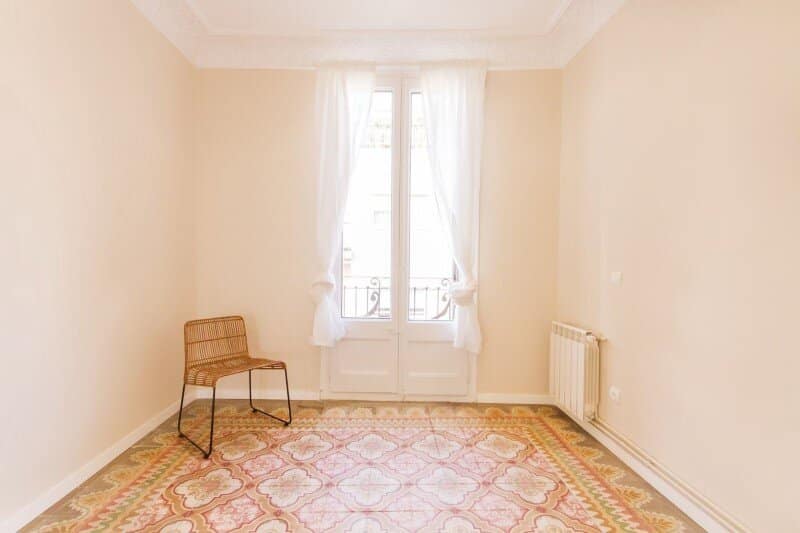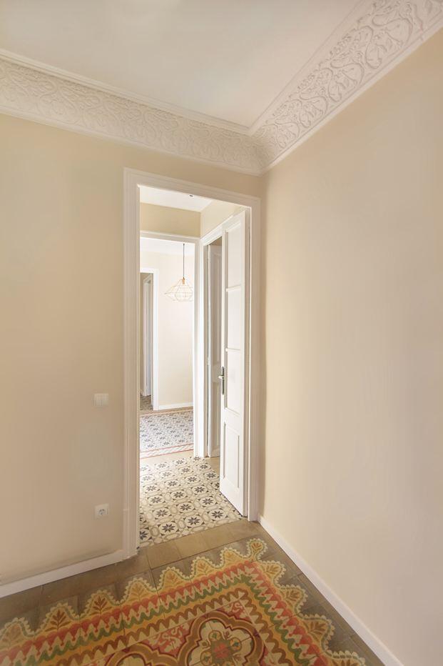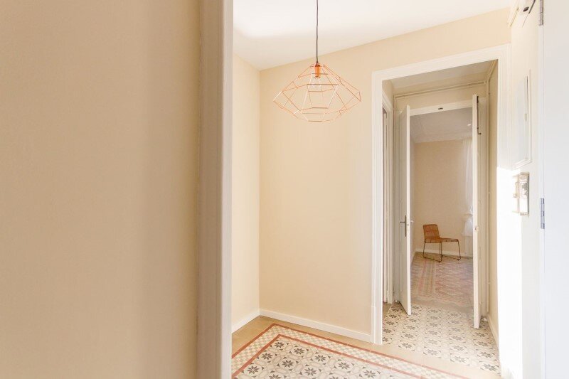 Description by Piedra Papel Tijera: 3 double bedrooms, 2 bathrooms and kitchen. All rooms have natural light. A charming apartment in the Gracia district in Barcelona is not always easy to find. This however was a modernist gem shattered, with modernist floors and high ceilings. Designed for rent, the owner wanted to bring quality and personality.