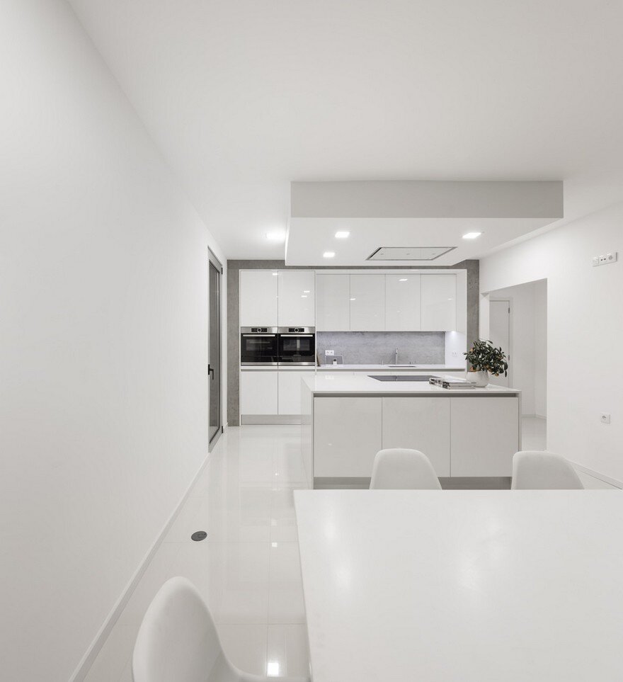 The image of the house is constituted by several curves that consist in the separations provoked by the surroundings. The topography is gently sloping, and the surrounding is characterized by a traditional style single-family dwellings from the 80’s. The land confines with a municipal street, which defines the entrance of the house. The project develops on a single floor (above the street level) with the intention of minimizing the visual impact of the viewer from the street and its implementation takes into account the better use of the solar orientation of the interior compartments and the best views that the site provides.
