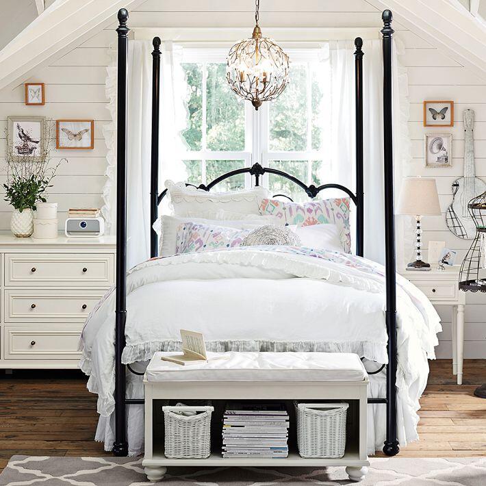 Whether you opt for iron or wood, the canopy bed will surely become the main attraction of the bedroom, a sanctuary dedicated to peace and relaxation. The way how you choose linens, fabrics and colors, decors and accessories can give personality to the canopy bed, that would reflect over the entire room. In order to reveal the beauty of a room with a canopy bed, I have selected several images with the PBteen bedrooms. PBteen beds and accessories are relevant to beauty, the charisma and identity that are gained by a bedroom that opts for a combination formed of canopy bed and well harmonized accessories with a lot of good taste. We hope that these bedroom ideas will be a source of inspiration for you!