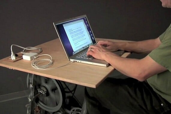 Andy Wekin and Steve Blood, the designers from Pedal Power, say that an employee that pedals 2 hours a day can generate energy equivalent to 3-6 hours of charging your laptop or 30-40 hours of charging your mobile phone. Therefore, you work at the office, do sport and produce energy. The designers speak about their project: “There are a billion bicycles in the world today – nearly one in every home. One day, we hope to see every household charging phones, processing food, and pumping water with pedal power. Our Big Rig is designed for off-grid applications and features a work surface, ergonomic seat for comfort, quick adjustments for different riders, a flywheel to smooth pedaling, a wide range of gearing, and an all-steel, hand-built frame. An average adult can use it to generate 100 watts of electricity, pump 5 gallons of water per minute, grind a variety of grains, as well as operate an air compressor, a hydraulic pump, most any hand-cranked machine, and a variety of small shop tools. It has been found to be particularly suitable for small scale agricultural applications such as cracking grains, churning butter, and pumping water.”