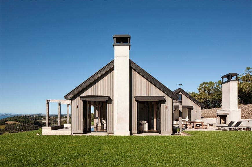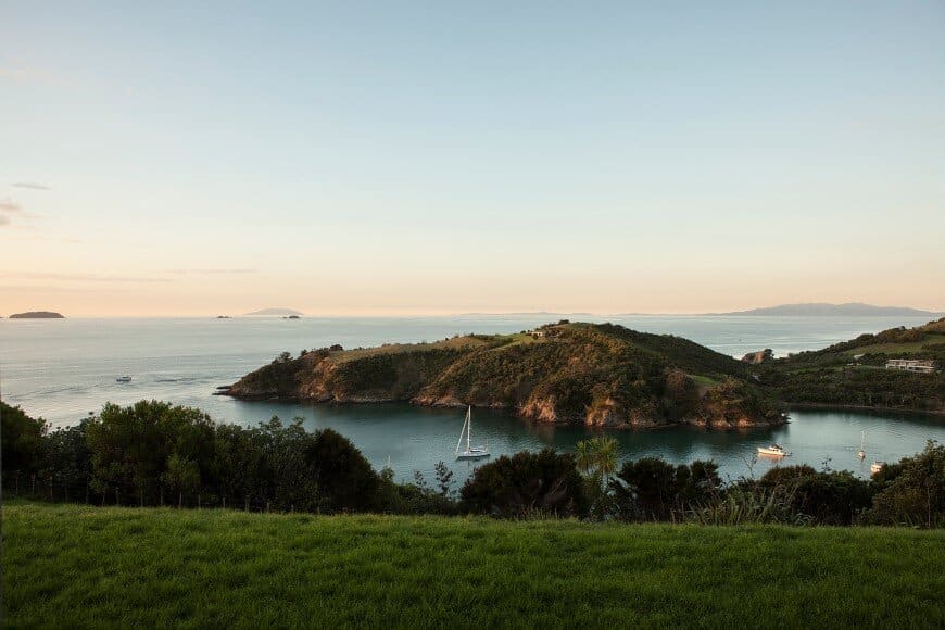 The architect’s description: This home overlooks a dramatic gulf landscape of rugged coastal hills and sweeping marine vistas. Situated along an east-west cut on a north-facing escarpment, the design of Owhanake Headland utilises natural materials and rational construction in a subtle vernacular response to the exposed conditions.