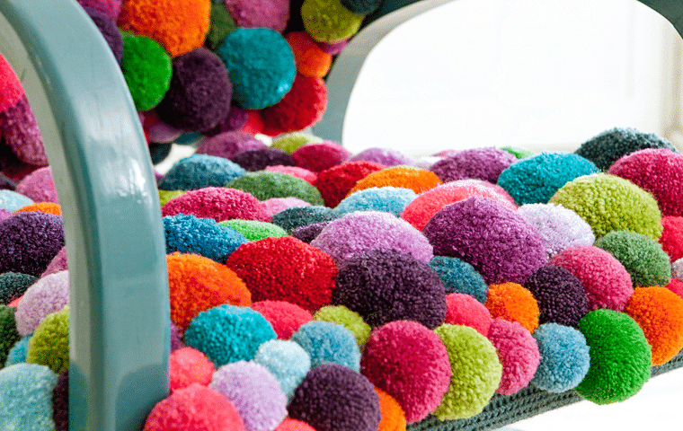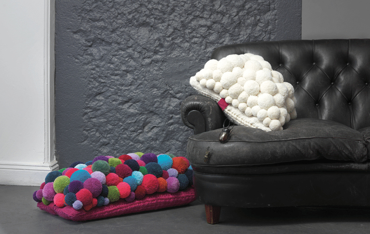 The Bommel Collection is also known under the name of Pompon and it is made by Myra Klose including carpets, pouf, chairs and cushion, all made by hand. For the realization of all the objects, prime quality wool is used. The presence of these soft furnishings immediately attract attention because they bring good taste, color and delight in any space.