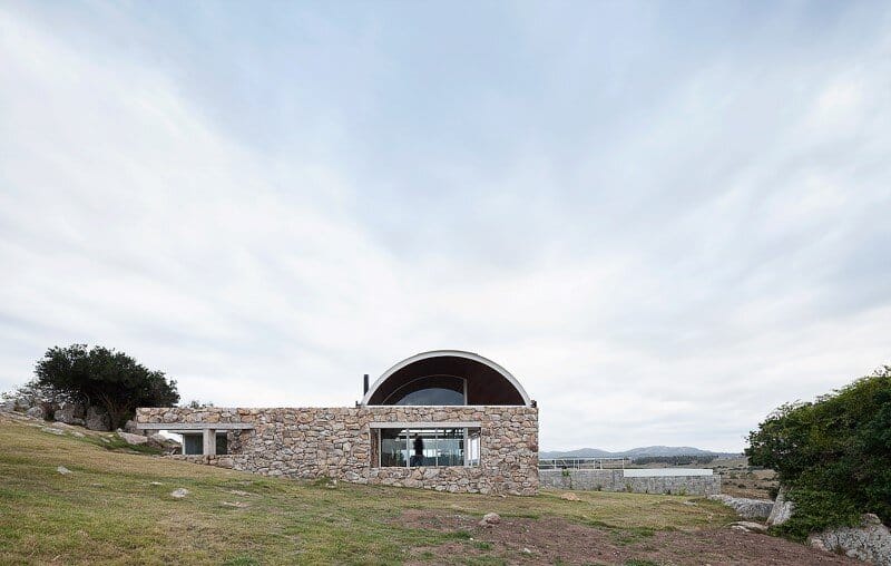 Desciption by Gualano+Gualano: Mountains, distant horizons, rustic and soft landscape. 20 hectares of land. The enclave, a set of rocks and a crown (Scutia Buxifolia) that position the piece. A courtyard to the south, protected, containing the tree. To the north the horizon, the views and the landscape sloping down to the stream that crosses the place. A long vaulted ceiling defines the project 6 meters wide x 24 meters long. The dome rests on two stone walls of the place, also supported by a lightweight tubular metal structure. Below, three pieces of the larger stone, bedrooms, bathrooms, the kitchen counter and grill A gallery, a long space, covered, protected from the south and open to the north. Photographs: Federico Cairoli. Visit Gualano + Gualano Arquitectos