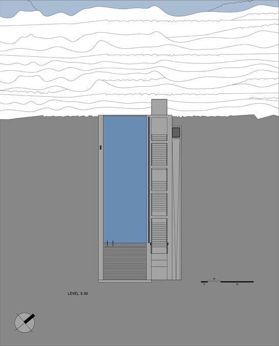 It is the inverted reference to Casa Malaparte, encased and protected by the tender earth that has hosted the human civilization for millennia. It is a complete study of aesthetics, structure, function and engineering, which thoroughly detailed, awaits solely its realisation.
