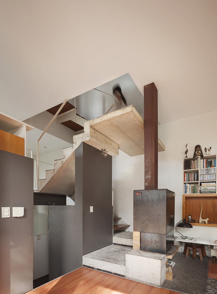 The simple and abstract square defines the center point of the house which is materialized as a hinge between the horizontal and vertical spaces of the house. Thus, the staircase plays a crucial role integrating the different levels of the project in its further development. Two perpendicular axes and four quadrants that are associated two by two define the functional levels and spatial qualities. The introversion of the house allows one to enjoy the advantages of the northern orientation privately and without interference. Photos Federico Cairoli