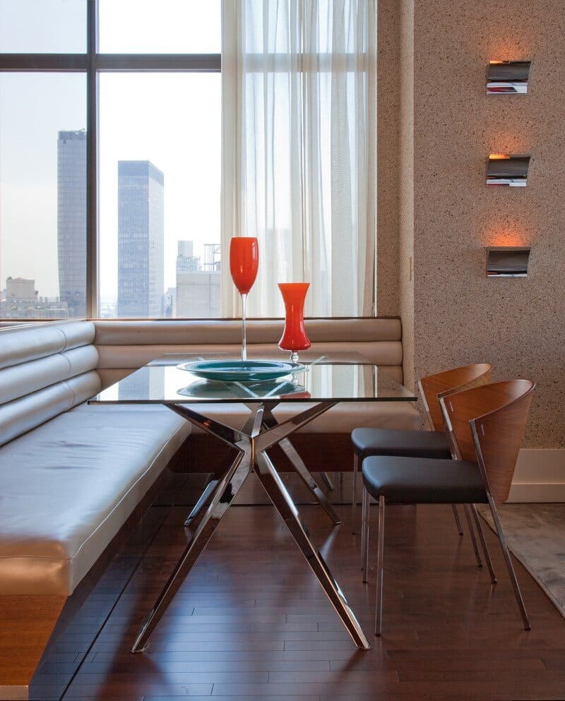 The interior design of Chelsea Highrise apartment was conceived by designer Andrew Suvalsky.