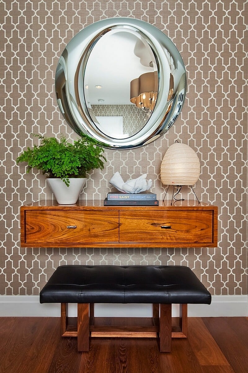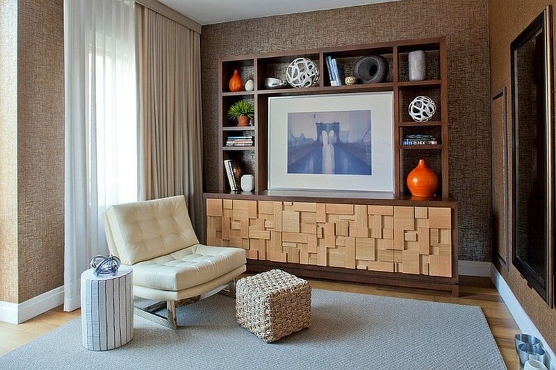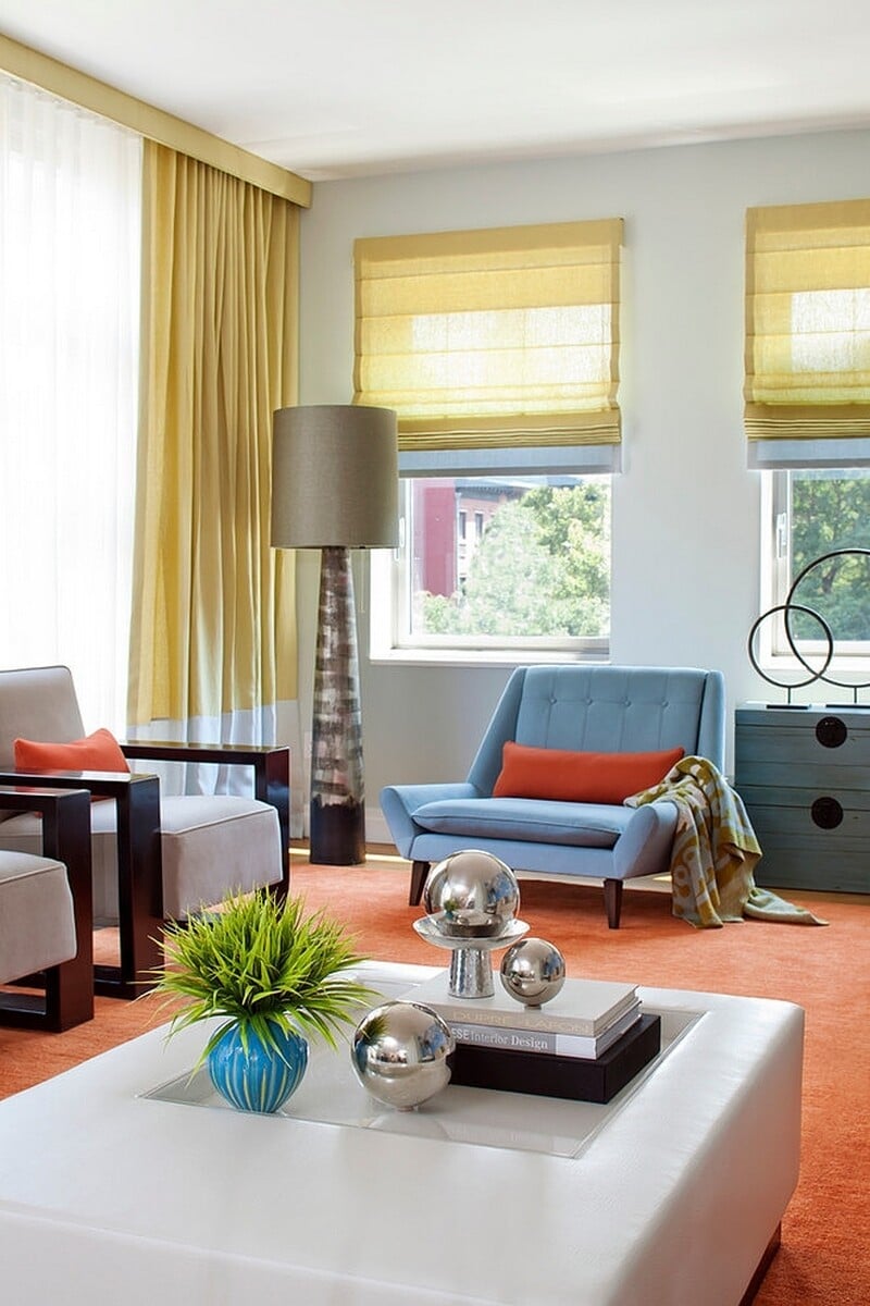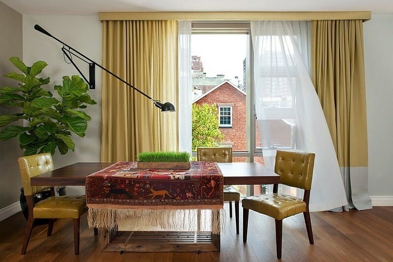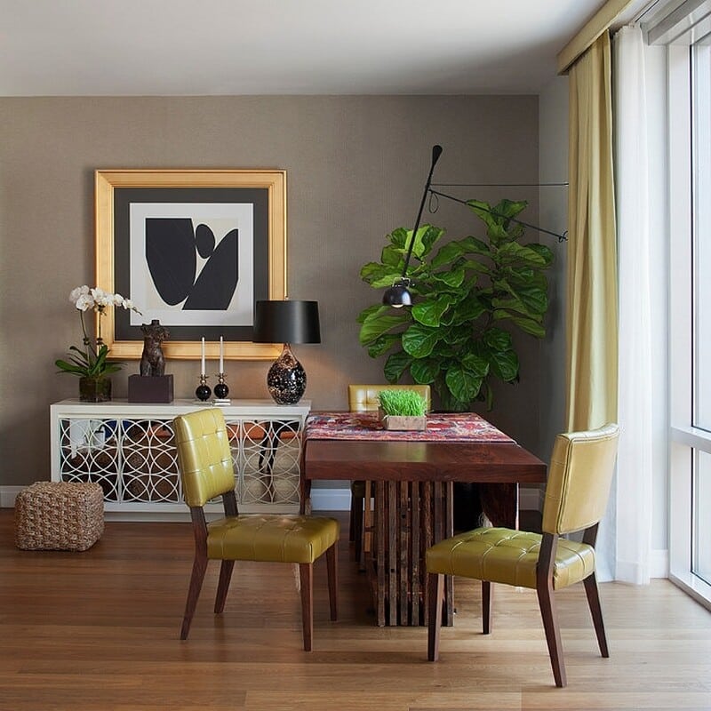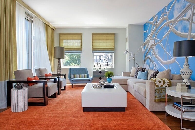 The designer’s presentation: For this residence at the celebrated Chelsea Enclave in Manhattan, my client wanted a fun and lively oasis in the city. Adding personality to a “white box” space, I added natural textures and rich colors inspired by the owner’s Persian heritage.