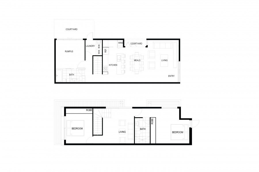 The living area also extends to another small courtyard on the west which allows the interior to feel more adjustable and spacious depending on the occupants needs. The western courtyard is designed to allow more light to enter the space and also functions as a vertical garden fence for herbs or plants for aesthetics. Visit ArchiBlox