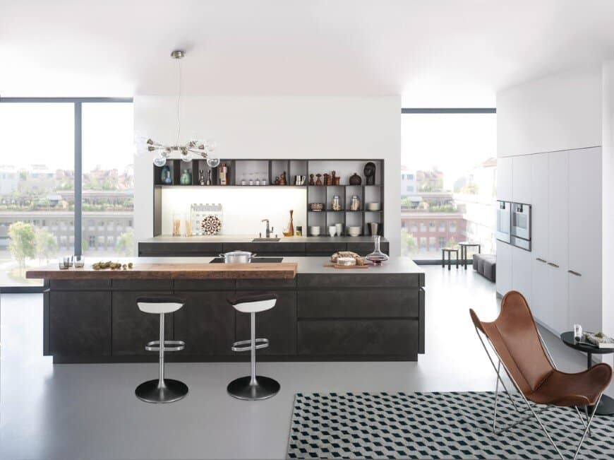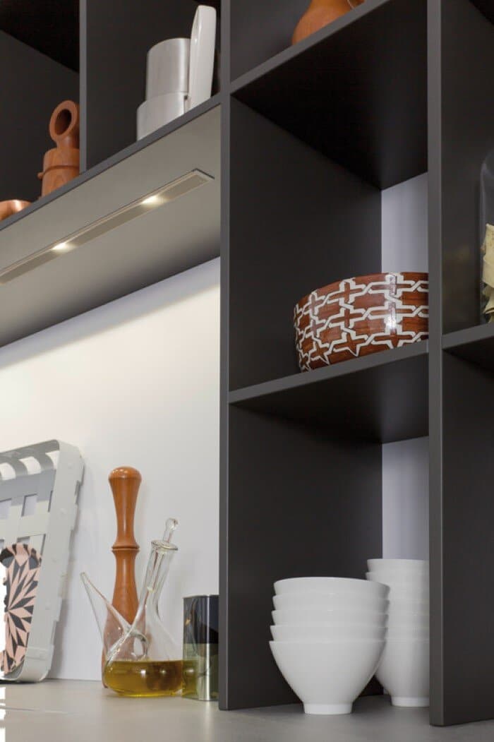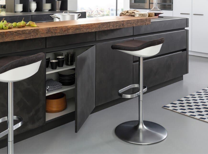 The designer’s presentation: “Marble of the modern era” such is the description given to the building material, concrete. Today this modern building materials increasingly found within the interior of sophisticated, minimalist design, family houses. Now, for the first time, Leicht is using this extremely versatile material, held in high esteem by architects world-wide, for kitchen fronts. This opens new perspectives for a kitchen design, oriented towards architecture inspired by the Bauhaus movement, based on an internationally valid design language. The material concrete stands for modernity, for timeless aesthetics and a strong expressive power. Together, material and brand image provide a convincing and tangible unit for the end customer oriented, towards architecture and design.
