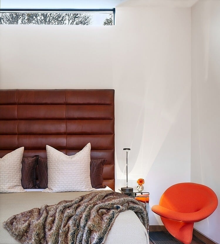At the ground floor changes in level, stepping up over the pool along the main entry bridge and back down again from the kitchen to the living area, provide a playful dialogue and transition between public spaces, even as a largely open floor plan and generous windows act to connect these spaces to each other and the outdoors. Additionally, wall-to-wall sliding doors in the living area open up to expand the room out into the pool and landscape that provides additional outdoor space for entertaining and gathering of friends and loved ones. The entry bridge spanning the pool enlivens these outdoor spaces with a grotto waterfall niche that compliments the cool shade of the heritage trees that reside throughout the yard. This rhythm is mirrored at the second floor as a series of folding doors in the ‘party room’ open to a large out-door terrace in the tree canopies, which again steps down to its own ‘landscape’ green roof garden with hot tub that takes in distance vistas of downtown.