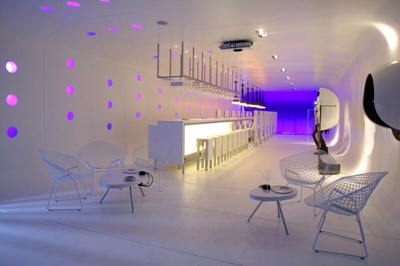 This project of Assadi and Pulido, the El Tubo Bar, was built on semi abandoned old Puericultorio Perez Aranibar building, which in 1820 was a neoclassical palace for an orphanage. For the bar to take shape, was used in construction steel- to give it strength, plaster board, which is very good for cutting down noise transmission, especially airborne sounds as music and loud talking; lacquered mdf and glossy white epoxy paint, which is used for flooring places because is hard and durable.