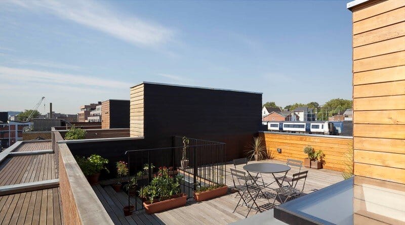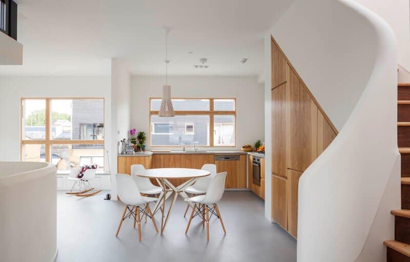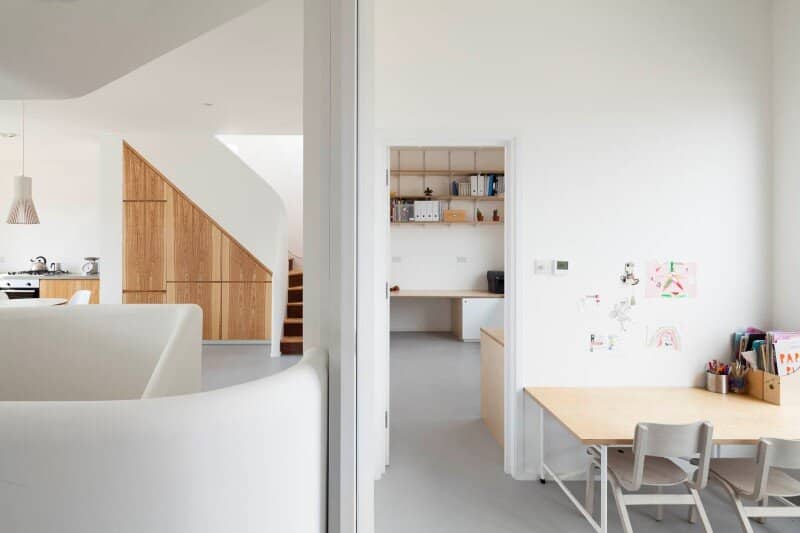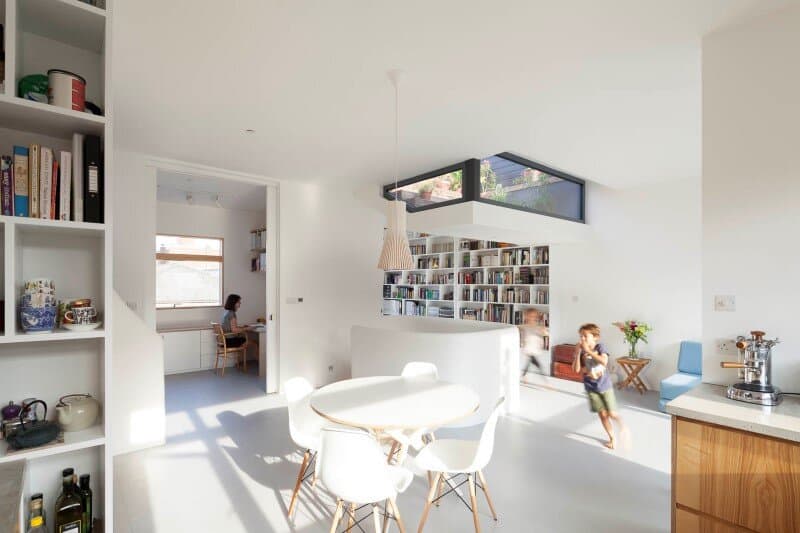 Description by Scenario Architecture: We were approached by our clients, a young family of 3 to redesign their home. The property had received previously been granted planning permission, however, the internal layout did not suit the clients’ needs. The site was challenging as it is part of a terrace that opens out to a hard landscaped internal community space/car park.