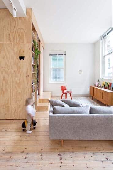 How warm and cosy can an apartment be arranged that is almost entirely made of wood and plywood? I think the answer is provided sufficiently eloquent by the contiguous images. The project Flinders Lane Apartment realized by Clare Cousins Architects from Melbourne, Australia, implies the redevelopment of a 75m2 apartment for a young family.