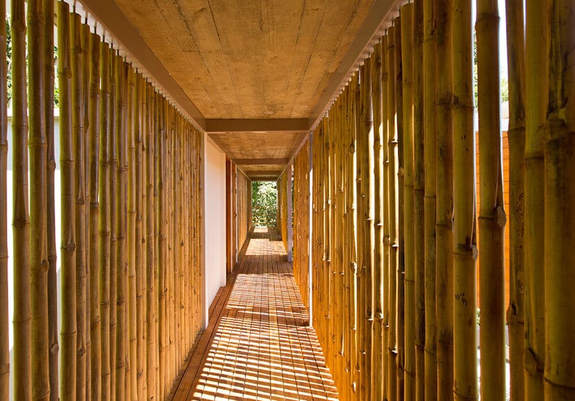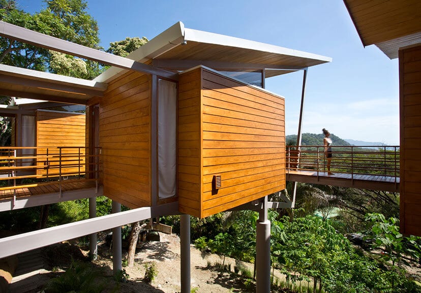 Flotanta House is created out of modules that are repetitive and linked by flying bridges that hover over the landscape. As the house had to be built on a steep slope, many of the pieces were prefabricated and craned up to position. We not only standardized a repetition of living modules which can continue to grow and be added in time, but also created a repetition of the primary structural elements in order to ease the time and effort of construction.