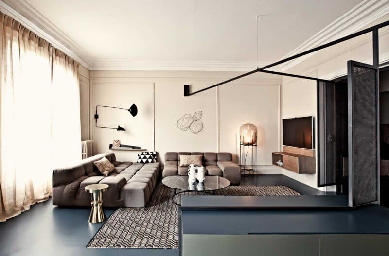 The apartment is located in a 1930s property in the northern XIV arrondissement bordering on Saint Germain. Before the restructuring project, the apartment contained a number of important pieces from the history of design and was still divided up as it was when the property was first built.