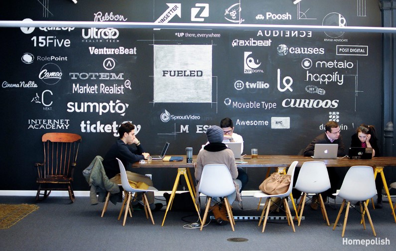 Fueled is a company that develops mobile applications, an activity that requires a lot of creativity and thinking out-of-the-box. With offices in several cities, the company operates like an incubator with a collective that connects several small start ups. Fueled Collective has appealed to Homepolish studio to think and design the new offices from New York focusing on the collective spaces such as the snack room, lounge areas and the fun and relaxation space.