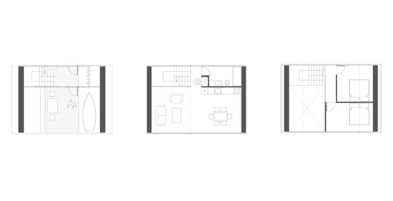 Description by DO Architects: Summer never ends in the rolling homes of Svencelė. These dynamic and playful houses reflect the relaxed atmosphere of their seaside location as well as the progressive and dynamic people who will choose to call them home. The noticeable form of each rolling home facilitates a clever plan layout over three surprisingly efficient levels. Transparent facades allow for uninterrupted views of the surrounding canals and ensure a strong connection, both visual and physical, between the occupant and nature.