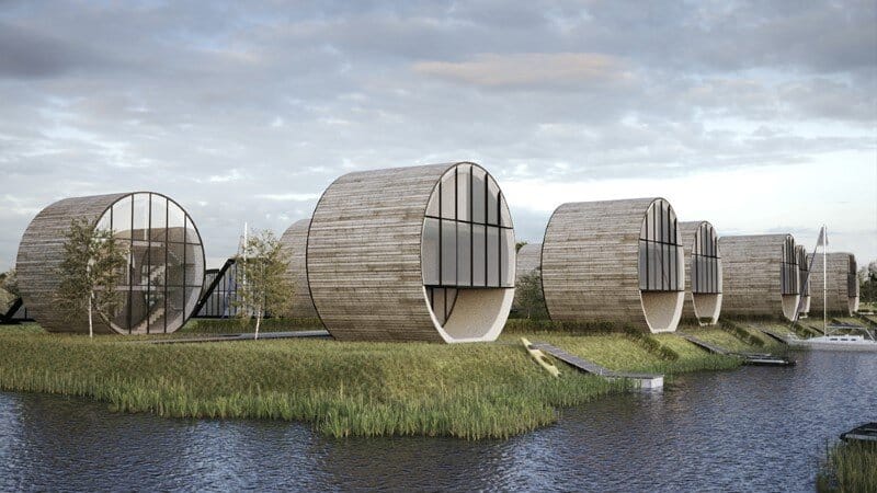 Lithuanian architectural studio DO Architects has developed a project that includes 12 houses with futuristic architecture. The ‘Rolling homes’ are proposed to be located in SvencelÄ—, Lithuania, near the Baltic Sea.