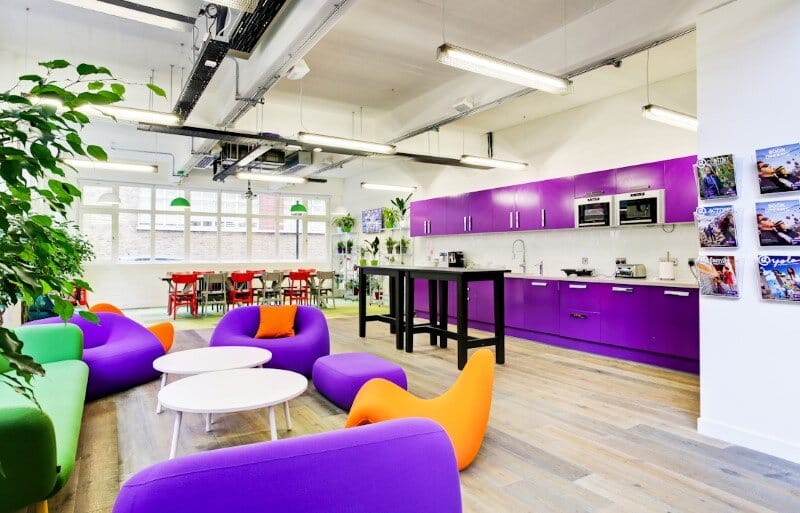 Description by Area Sq: G Adventures, the socially-responsible and sustainable adventure travel pioneer, wanted a stronger presence in the UK due to continuing success and expansion. Existing workspace was overcrowded and off-brand, with no breakout space to encourage interaction.