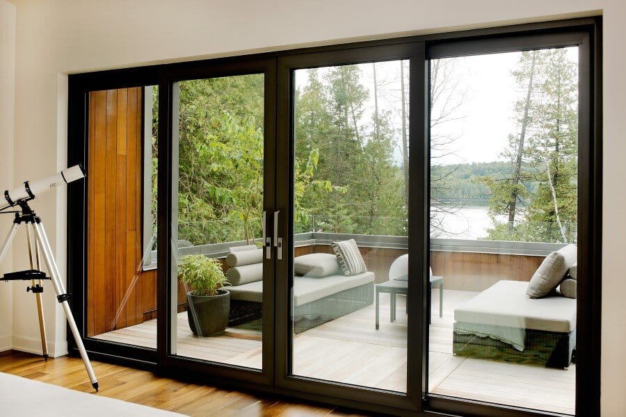 The entrance to the chalet is located on the superior level where you access by a big outdoor porch to the doorway. The inferior level, where the living spaces are located (living room, kitchen, dining room) is at the same plane of the ground nearby; allowing easy access to the land by many doors on the tree facades on the side of the lake.