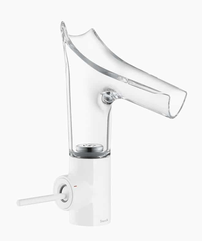 How can we truly experience the power and beauty of water close-up, in our own bathroom? According to Philippe Starck, Axor Starck V is “a mixer that has been reduced to the absolute minimum: completely transparent, practically invisible, and the source of a natural wonder – the vortex.” The transparent spout, made of organically-shaped crystal glass, makes the water visible and blends in with its surroundings. The beauty and vitality of the vortex combines the functional and emotional aspects of water, making it the central focus.