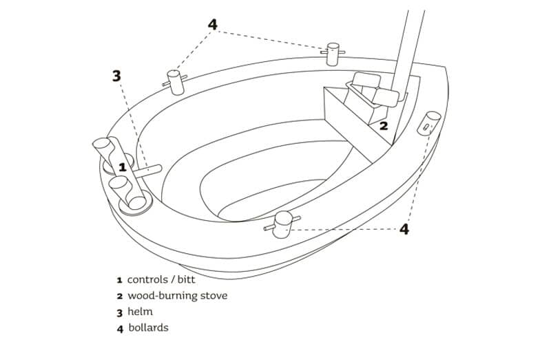De Bruijn, originally trained as a sculptor at the Willem de Kooning Academy from Rotterdam, is also impassioned of physics and engineering. Frank says: “It’s much more than a boat; it’s a vessel with different options. When the tug is filled, there is only a narrow rim between you and the water, making you feel at one with your surroundings.”