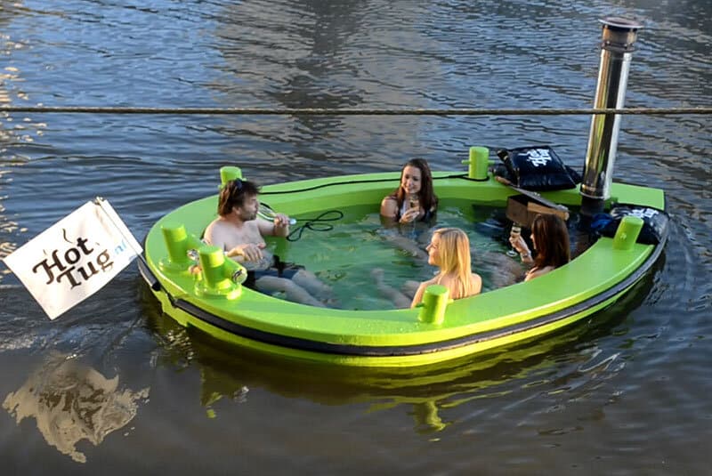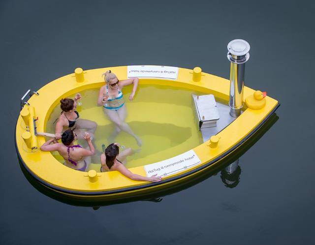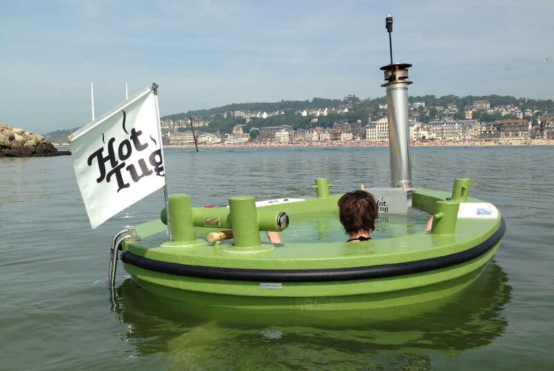 The HotTug is a hydromassage hot tub heated with wood and provided with an engine. This motorized tub allows you to enjoy a warm bath while you sail. HotTug is ideal for entertaining and relaxation with friends, whether you choose to stand or to sail.