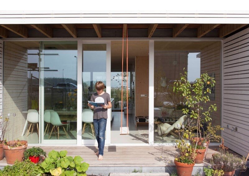 In just 7 weeks the whole building was constructed, including the windows, doors, stairs and installation as well as the bathrooms. A maximum of insulation, high quality glass, solar panels on the rooftop, shower heat exchanger and ventilation heat recovery minimise energy use and make the house sustainable and above all comfortable. The balconies on the south side create a natural sunscreen to protect from overheating during the summer months. They keep the warmth outside, but let the light in. Rainwater is collected to use it in the garden.