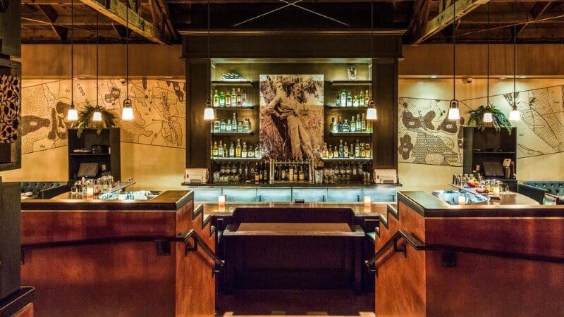 The design for Hutchinson Cocktails and Grill is steeped in family history. Richard Hutchinson Hopper, a man whom his family describe as a modern Indiana Jones, was the inspiration for this Indonesian influenced steakhouse. The restaurant design reflects his stunning journeys, from artfully placed personal artifacts to custom woodworking and Indonesian fixtures and furniture.