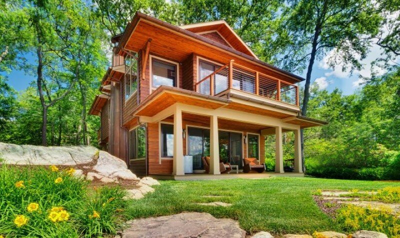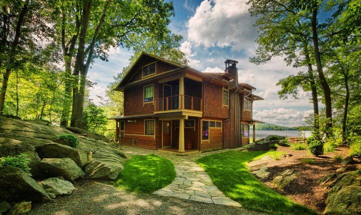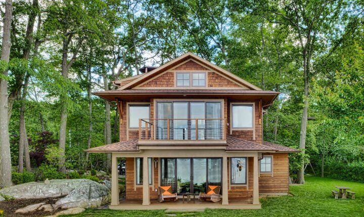 Description by Hudson Design: This relatively Not So Big house fits delicately between a natural deposit of boulders, the rocky shoreline of the lake, existing wetlands and closely spaced lakeside homes.