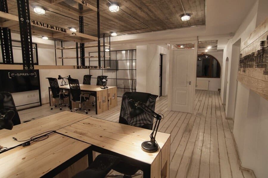 This IT office belongs to [e-spres-oh], a web development company based in Timisoara, Romania. Creative interiors, warm and comfortable, have been designed in industrial style by Ezzo Design Studio.
