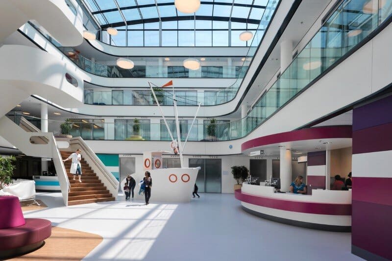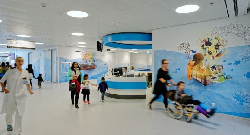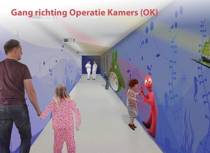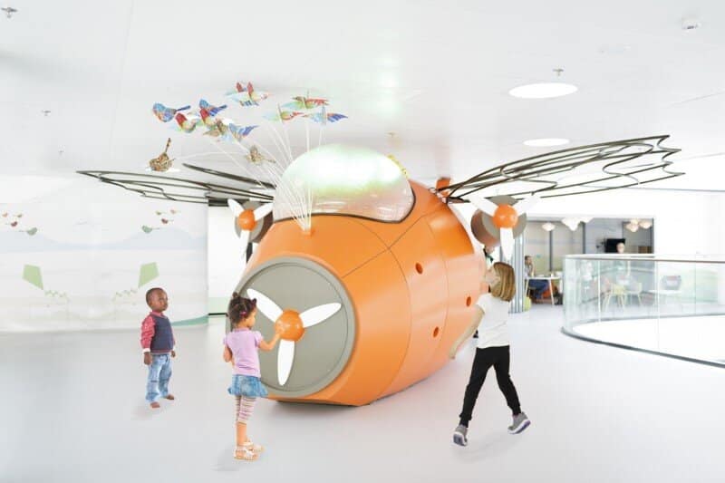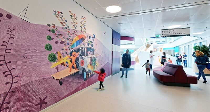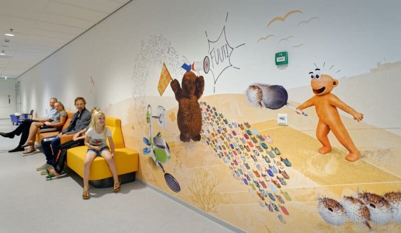Fréderique Hofstede, paediatrician and medical manager of the Juliana Children’s Hospital, says: ‘The goal of the concept was to create a wondrous world that would provide distraction. Research shows that a child-friendly, distracting environment reduces stress and the perception of pain in sick children, which helps them to recover sooner.’