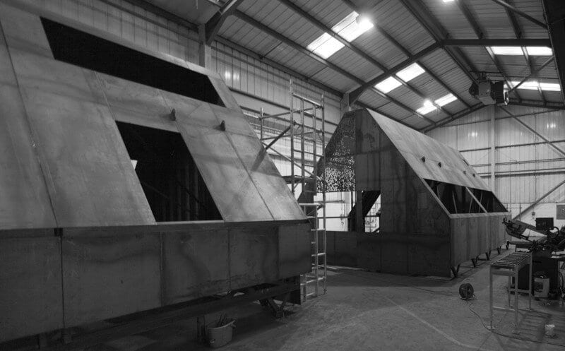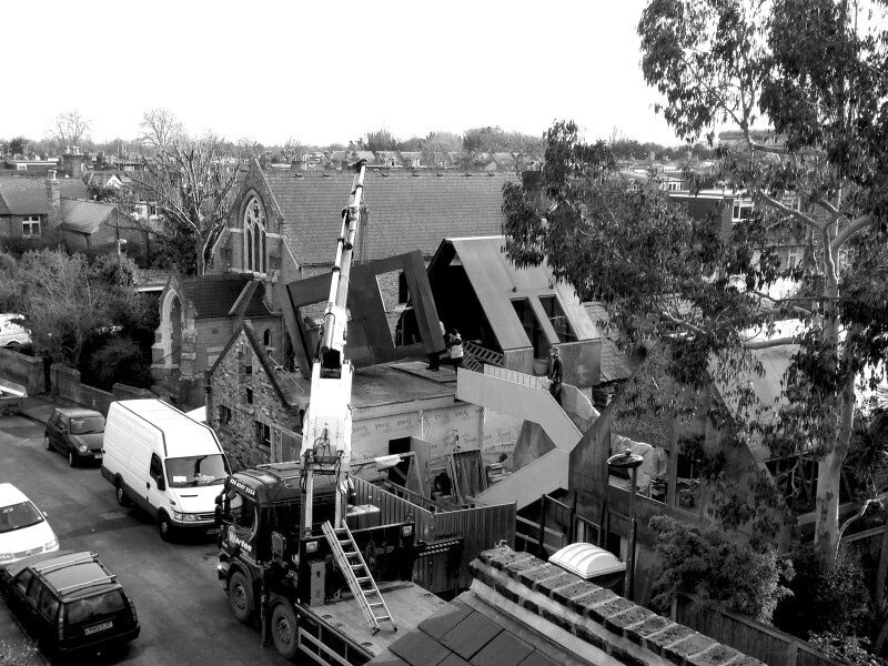 Kew House was an experimental build, driven by the architect’s and client’s shared interest in a ‘kit-of-parts’ approach and the self-build possibilities emerging from digital fabrication. The weathering steel shells were prefabricated in Hull and then craned into place and welded together. CNC milling and the on-site joinery workshop were used to create bespoke paneling, furniture and cabinetwork that could be fitted by the client and a small team of architecture graduates, testing the theory that digital fabrication can reduce the distance between design and production. The implications of this technology for house building are manifold with bespoke fit-out on a budget becoming increasingly viable. For more information visit Piercy & Company
