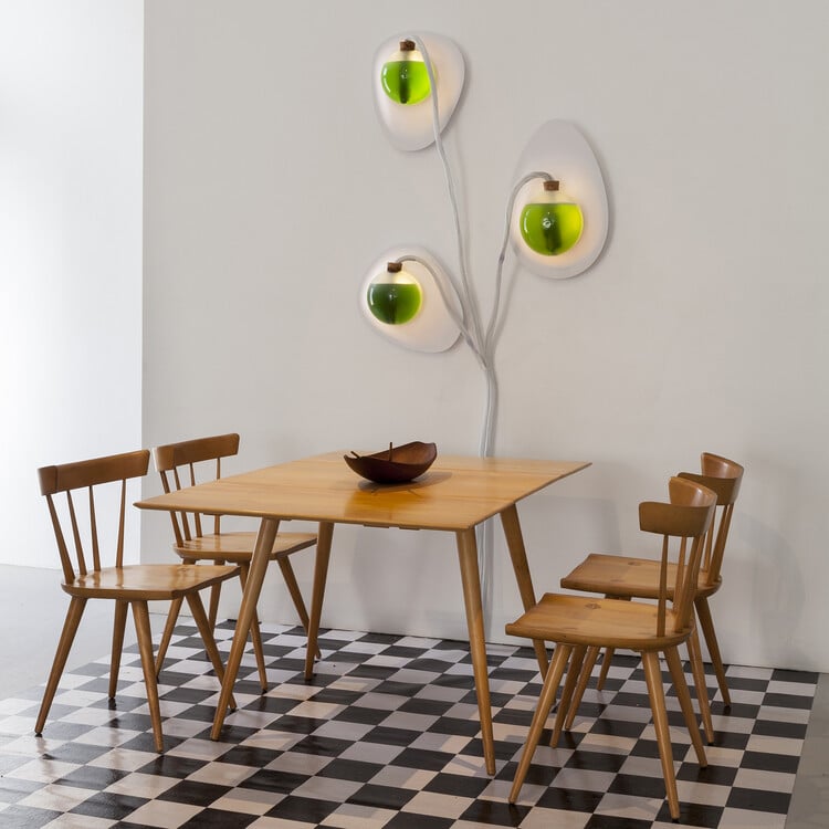Through an installation of domestic vignettes in which Spirulina algae are cultivated in custom glass bioreactors designed as household furnishings, Living Things creates a symbiotic environment between people and microorganisms.