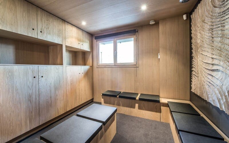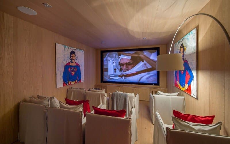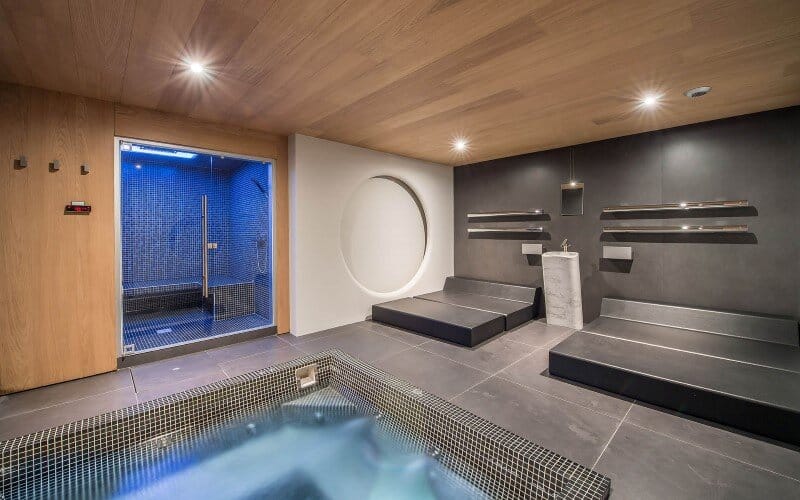 When you’re not out on the slopes, which are conveniently just moments away, you’ll be able to enjoy a relaxing sauna or a dip in the hot tub, down in the private wellness suite. The chalet has its own cinema room, too, so after a morning on the snow, you can get in the beers and popcorn and have a cosy movie matinee.