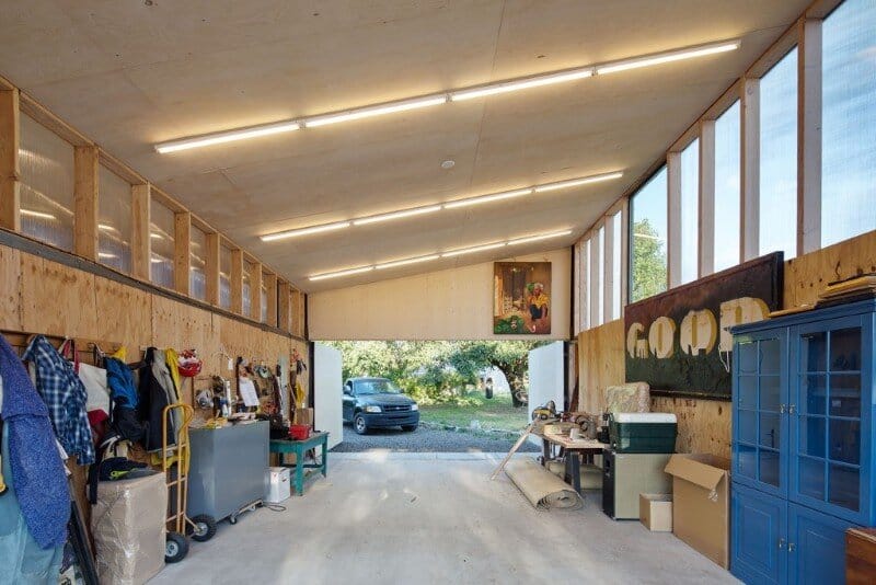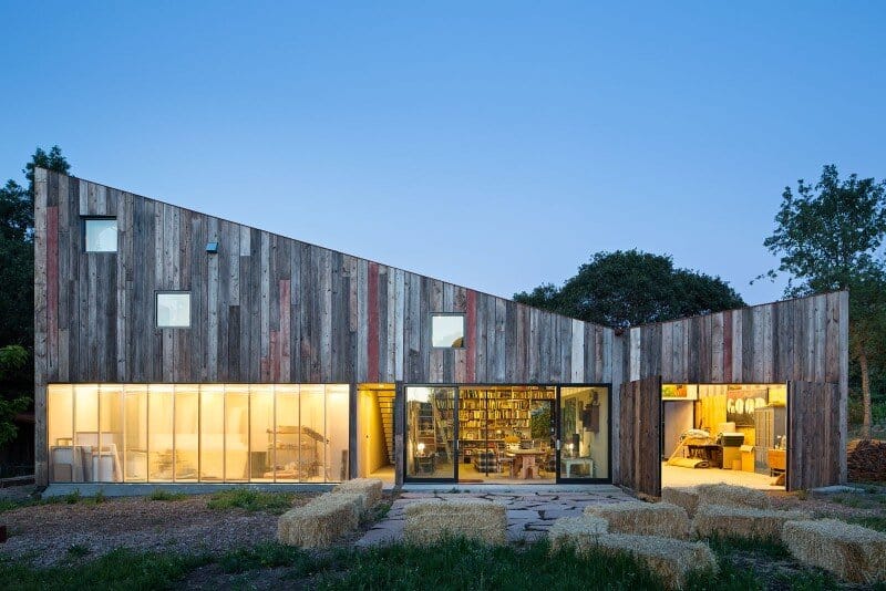 Description by Mork Ulnes Architects: The initial Meier Road brief required large flexible spaces that could house a workshop, art studio and storage for barn equipment and collectibles. Exploring the barn typology within this agricultural region brought that historically relevant context to the fore and created a dialogue with nearby barn structures. The question of how to create an ideal art studio within the barn vernacular, however, emerged as the main challenge of the design process. Ultimately, inverting the traditional barn’s gable roof created two high points that invite indirect, northern light into the studio and increase the double-height space within.
