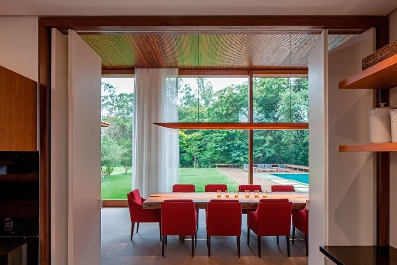 Description by Jacobsen Arquitetura: From time to time our clients request residences with traditional gable roof, eaves and ceramic tiles. A modern country house with a Brazilian farm look. Briefly, this was a request from a nice young couple from São Paulo for their country house an hour away from the city.