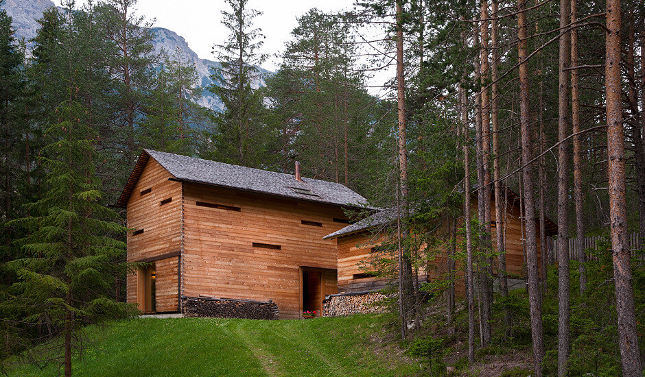 A dilapidated hunting cabin in the midst of the South Tyrolean Nature Park Fanes-Senes-Braies has been replaced by a modern building. The result is a reduced, linear structure based on typical, but refined elements of the old house. For example, the traditional block construction has been built without the usual massive protruding corner joints.
