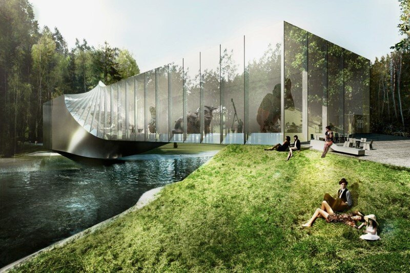 BIG approached the design for a new museum as an opportunity to create a master-plan for these three landscapes, organizing the entire 270.000 m2 sculpture park as an outdoor museum. Rather than building on the proposed site close to the old mill, BIG moved the location for the new museum down the river in order to preserve the mill’s historical setting.
