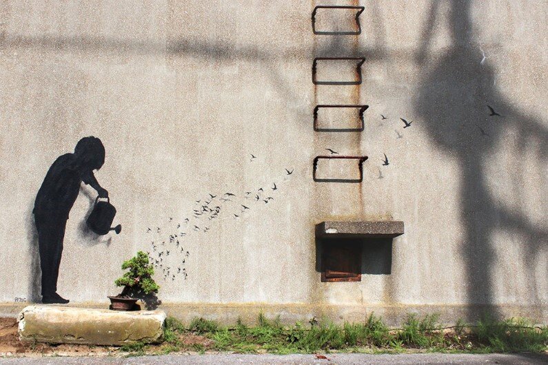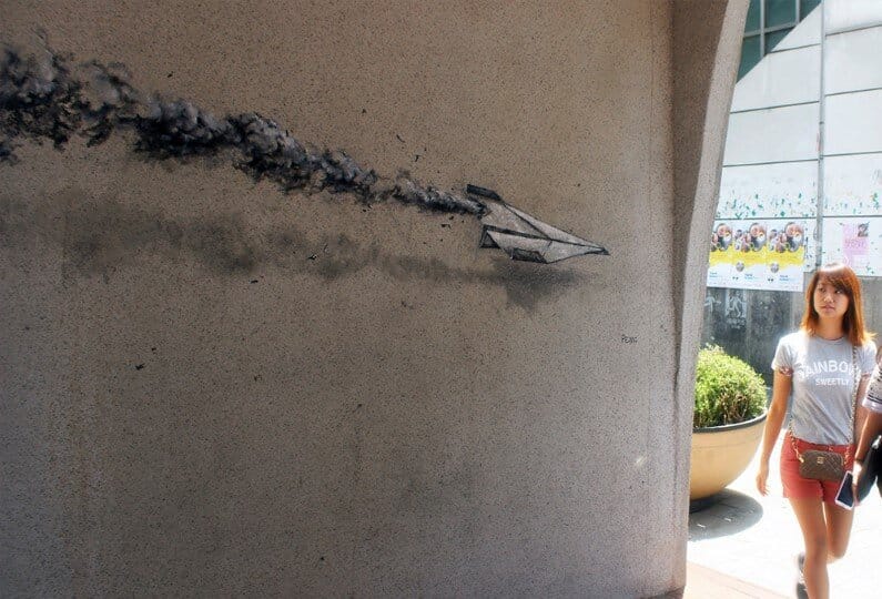 Spanish street artist Pejac recently created a series of murals in Hong Kong, Tokyo and Seoul. His works incorporate cultural references, economic or social, with a well-defined message. Pejac’s paintings can be also found on walls in Moscow, Paris, Istanbul, London and Milan. You can see several additional pieces posted on Pejac website.