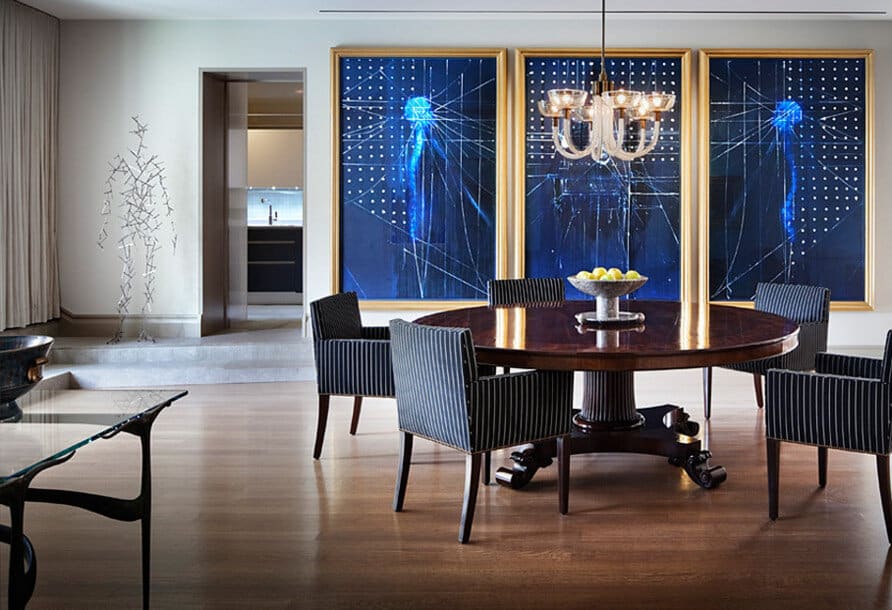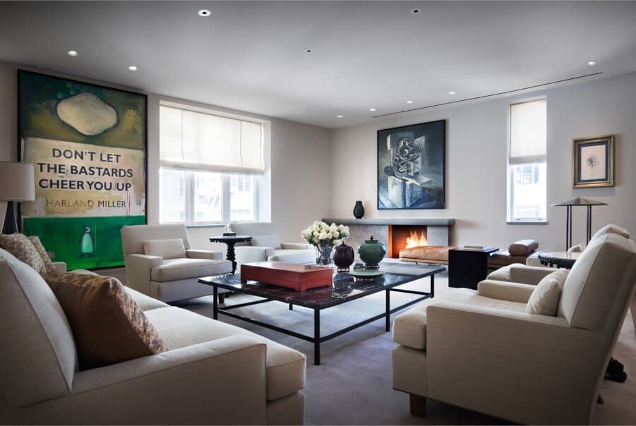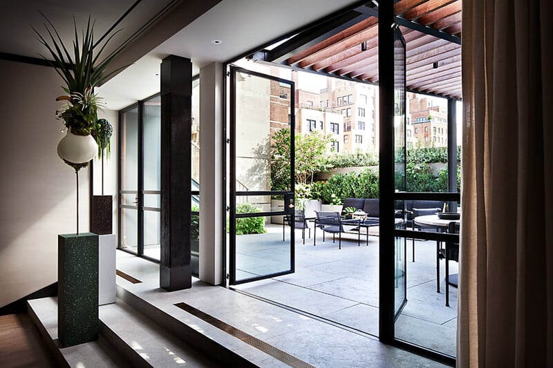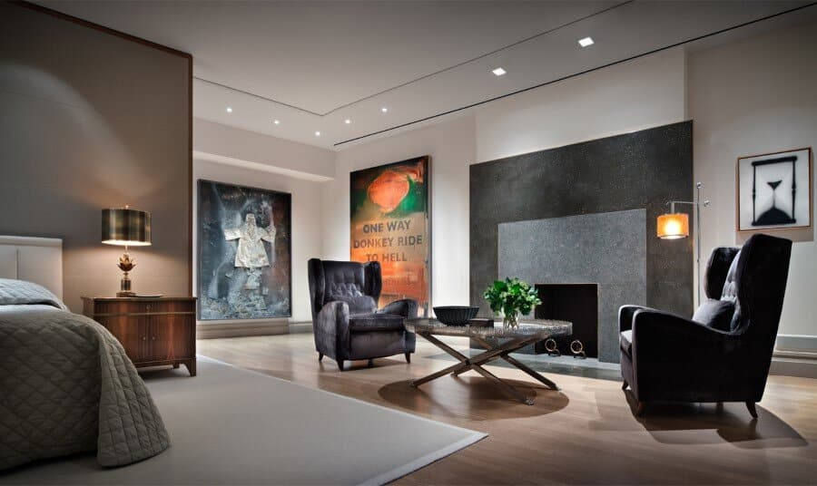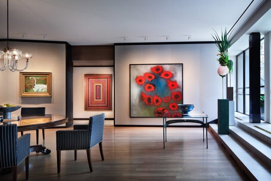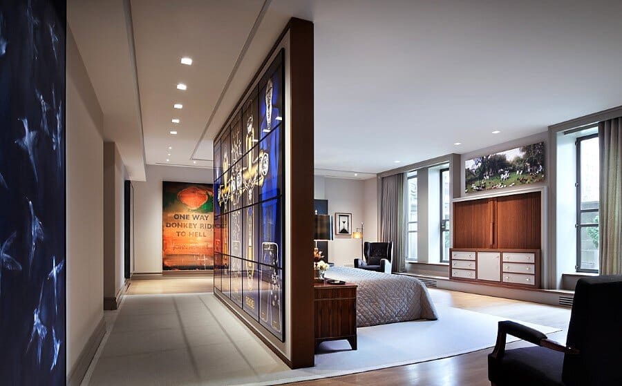 Ronald Bentley associate B Five Studio has completed the New York penthouse loft. Thad Hayes furnished the interiors. This penthouse triplex is designed to display the owner’s wonderful contemporary art collection. Nestled high in a dense New York City neighborhood, multiple terraces provide for a strong connection to outdoor urban living.