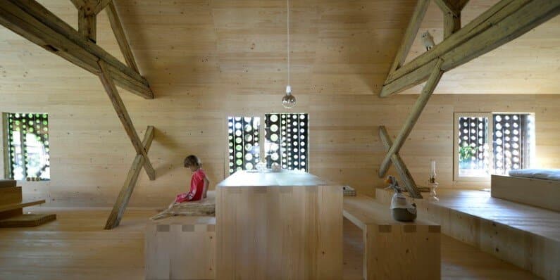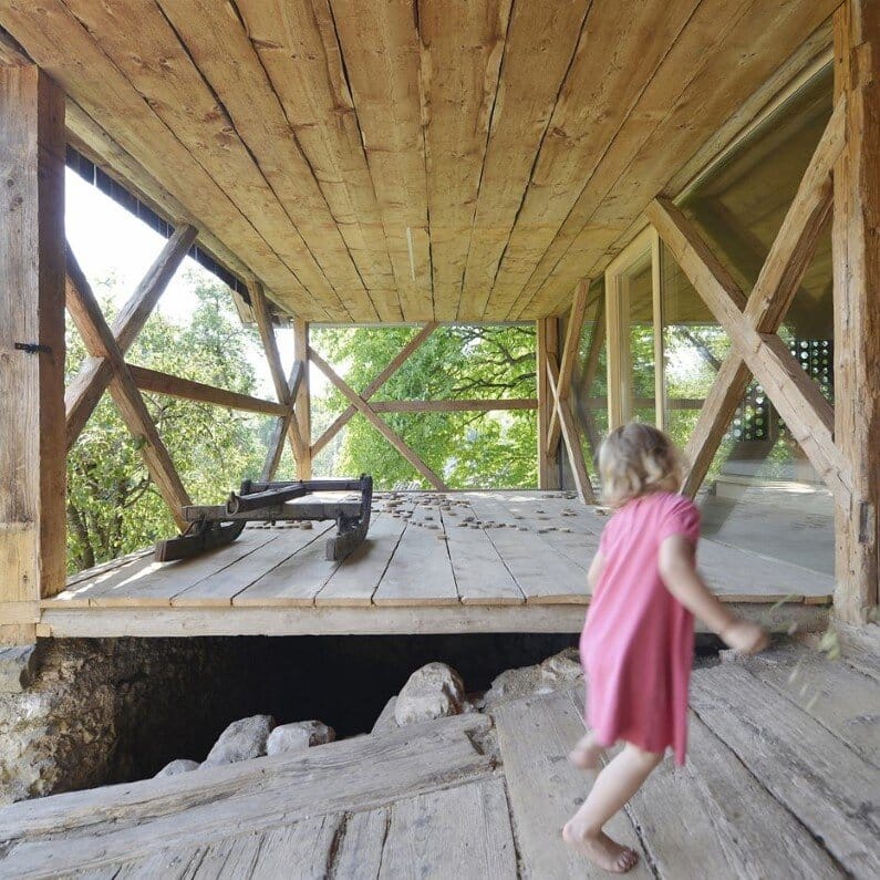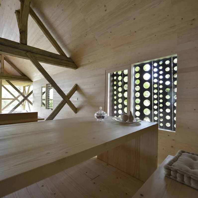 The architect’s description: Traditional landmarks creating a Slovenian countryside also include different types of farmhouses, hayracks and barns. Unfortunately many of these no longer serve its purpose, therefore are mostly in poor condition, non-maintained and often simply destroyed and replaced with generic housing. Only by embracing the traditions that have been passed on to by their ancestors ensure that the Slovene vernacular architecture (a category of architecture based on local needs, construction materials and reflecting local traditions) survives not just as national symbol, but also an integral part of the Slovenian rural lifestyle.