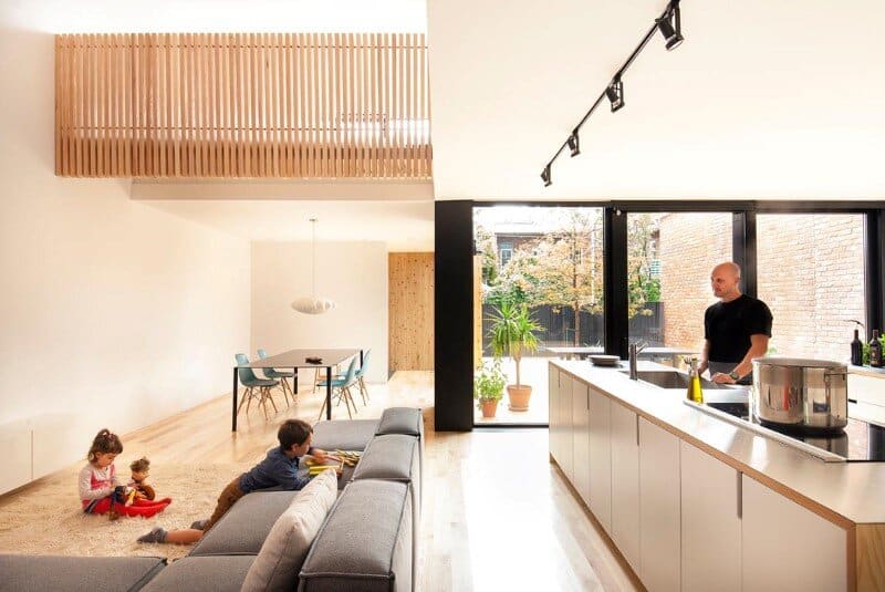 Description by la SHED: Located in the heart of the Villeray district, the De Gaspé House project consisted of the major renovation of an existing building that lost most of its original characteristics. The old duplex including a garage as well as a variety of annexes was transformed into a single family home for two adults and two children.